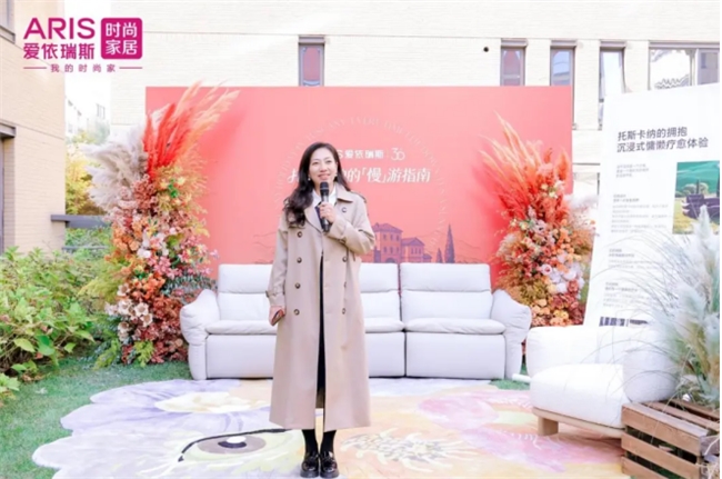 北京家居行业协会秘书长郑秀苗代表行业协会肯定了爱依瑞斯三十年坚持原创设计的行业引领作用。她指出,当下家居产品已成为传递生活方式与情感温度的载体,托斯卡纳沙发将阳光、慵懒等元素融入设计,精准契合了消费者对慢生活的向往,为行业发展提供了优秀范本。