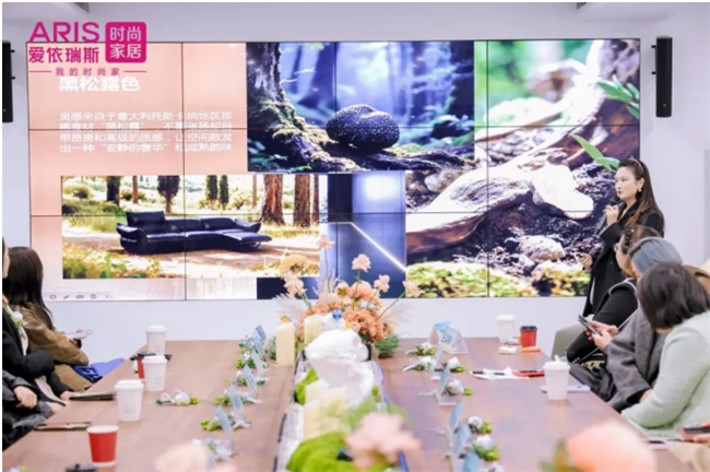 此外,隋艺昆总经理还分享了爱依瑞斯与意大利艺术家PAOLA联名的冥想花园系列。该系列融合中国花束、意大利花卉、蛇年生肖及品牌经典蝴蝶元素,将艺术纹样延伸至沙发、靠包、屏风等产品,通过 “人与植物、自然共生”的设计理念,为家居空间注入艺术疗愈力量。